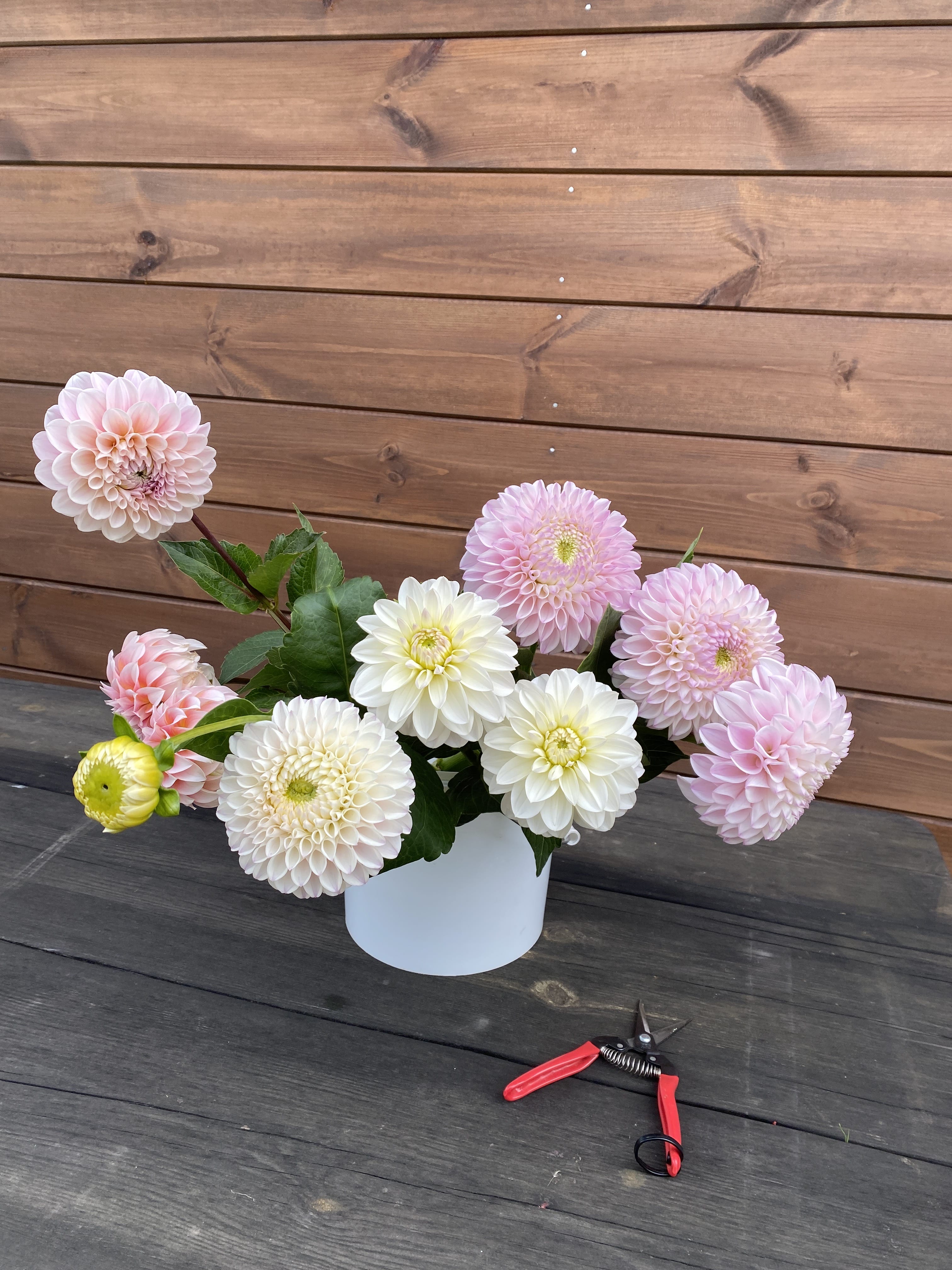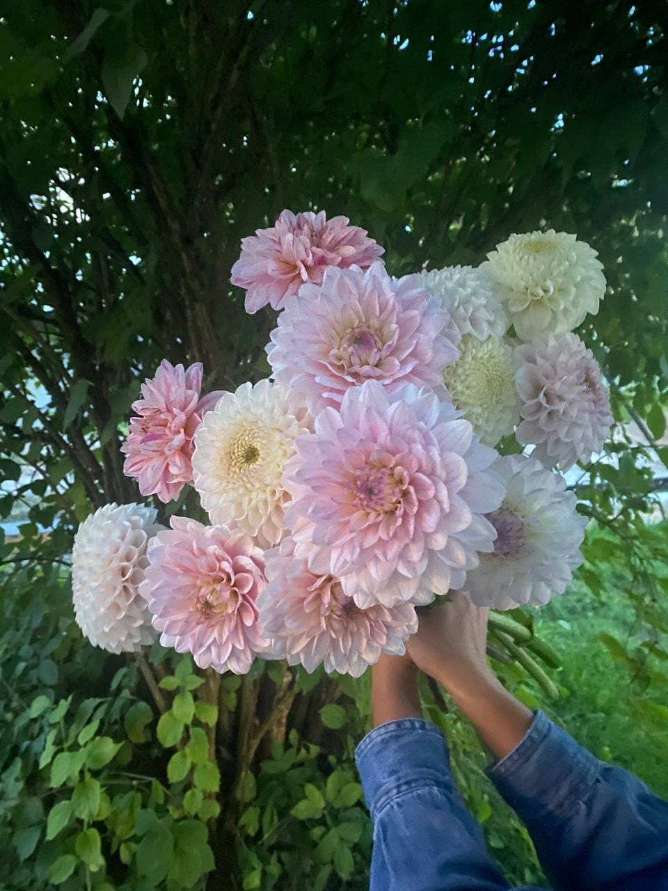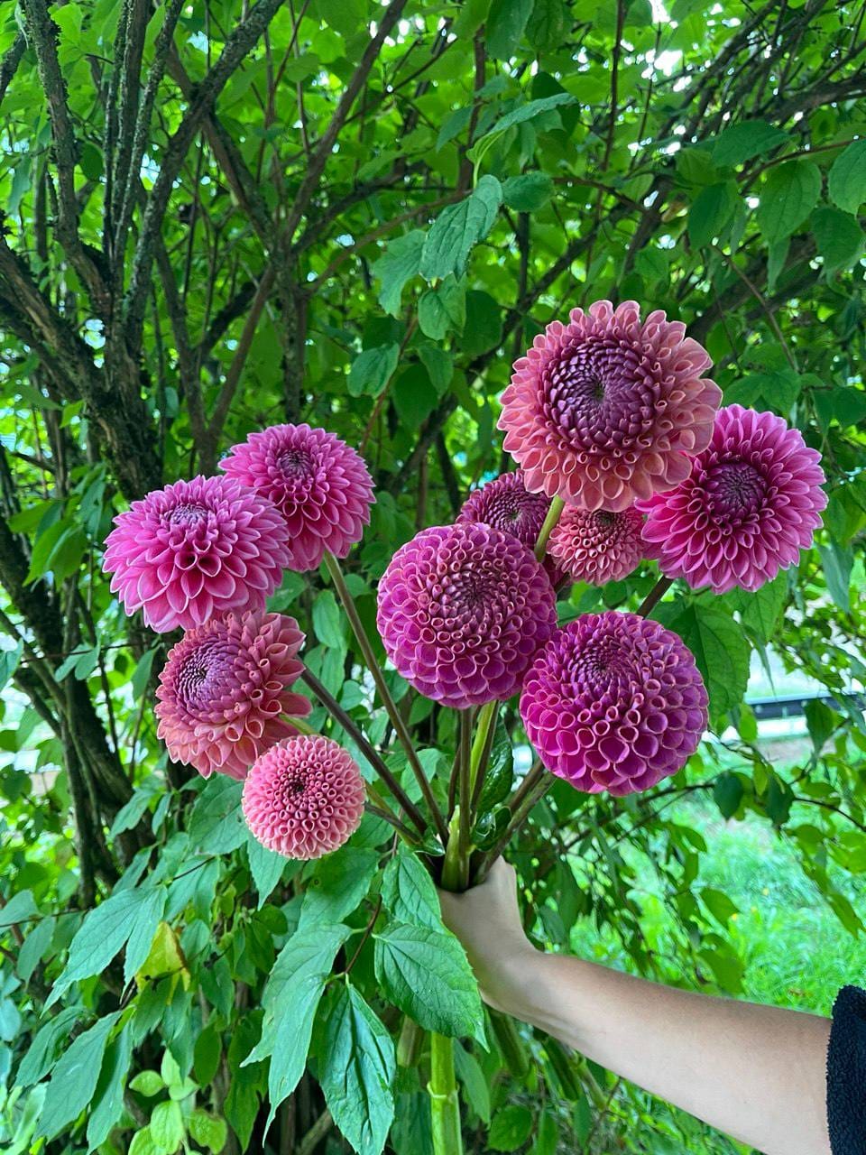 Шикарные георгины, стоят в букете до 10 дней. Каждый день необходимо менять воду на свежую и подрезать кончики стеблей.