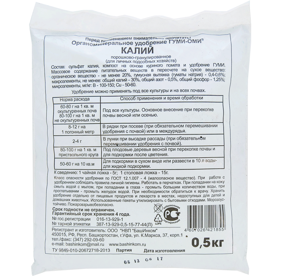 Удобрение содержит органическую и минеральную составляющие, высокоэффективно. Благодаря содержанию Гуми обладает антистрессовым и стимулирующим эффектом